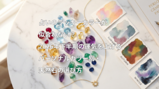 2026年下半期の運勢を上げるラッキーカラーが「自分に似合わない」と悩んでいませんか?パーソナルカラー診断を用いて、あなたの肌を最も美しく魅せる「運命の天然石」を見つける方法をプロが解説。あなただけのお守りジュエリーで幸運を引き寄せましょう。