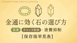 基礎知識・選び方 金運に効く石の選び方|堅実・チャンス到来・浪費抑制【保存版早見表】 金運を「堅実・チャンス到来・浪費抑制」の3タイプで即比較。主効果・相性・組み合わせ・浄化の早見表とFAQで、期待値を抑えつつ最短で“自分に合う”を見つけます。 2025.09.30 基礎知識・選び方金運