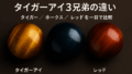- タイガーアイ:仕事運・決断力UP。重ね付けではトルマリンを下(手首側)に。