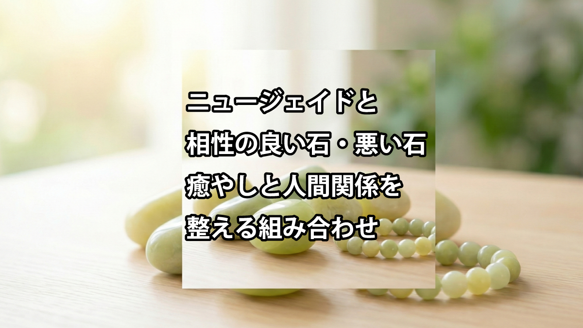 相性が悪い石は少ないですが、エネルギーが極端に強すぎる「モルダバイト」などと合わせると、ニュージェイドの穏やかさが隠れてしまうことがあります。優しい石同士で合わせるのがポイントです。