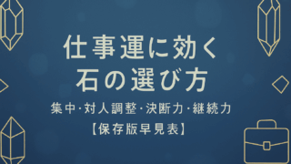 基礎知識・選び方 仕事運に効く石の選び方|集中・対人調整・決断力・継続力【保存版早見表】 仕事運に向く石を「集中・対人調整・決断力・継続力」の4タイプで即比較。相性・組み合わせ・浄化の早見表とFAQで、最短で“今の課題”に合う石が見つかります。 2025.09.25 基礎知識・選び方