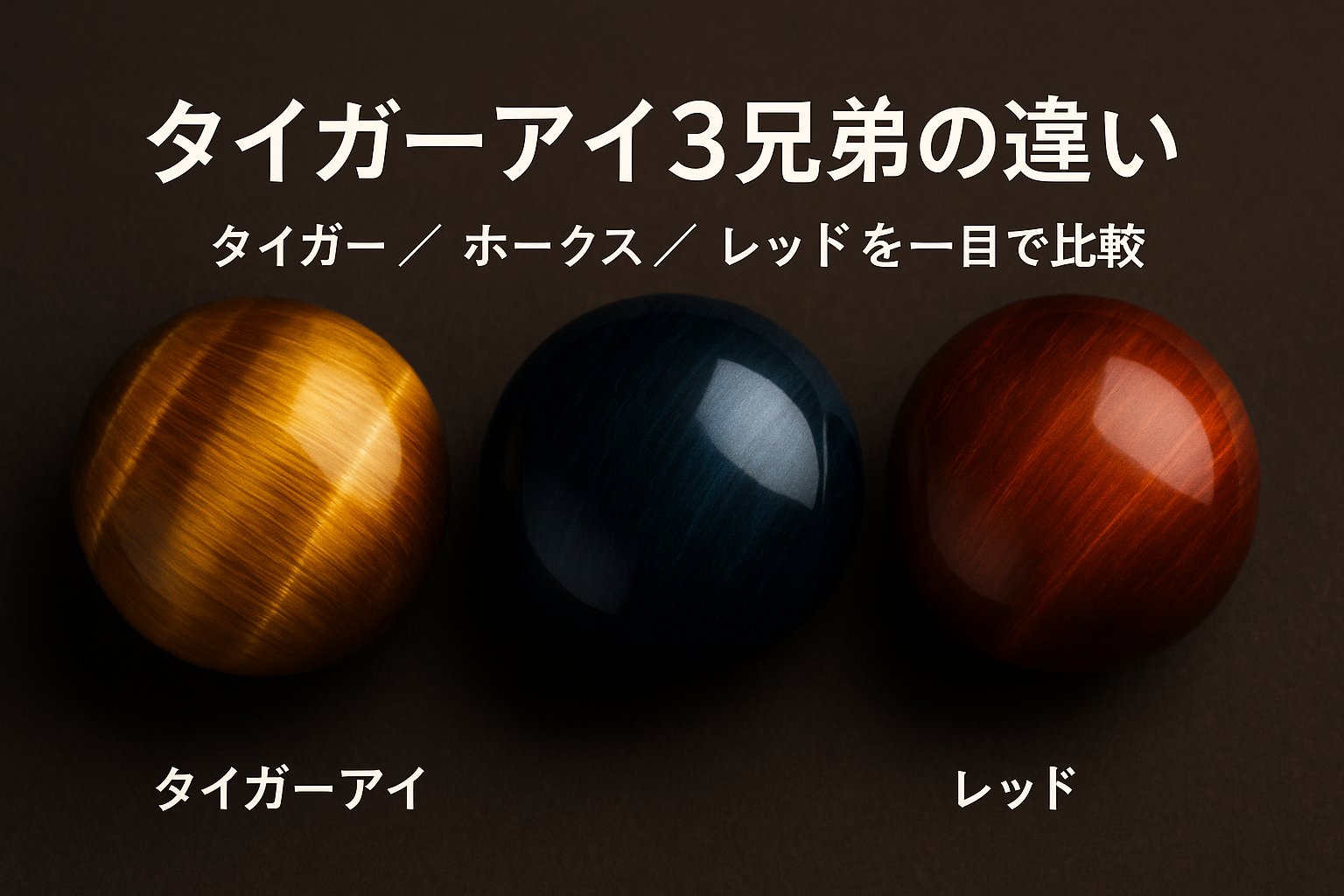 タイガーアイ、ホークスアイ、レッドタイガー。見た目は似ていますが、波動は驚くほど違います。 金運のタイガー、冷静さのホークス、情熱のレッド。光の写り込み・条線・色味から“今の自分に合う一本”を見極めましょう。