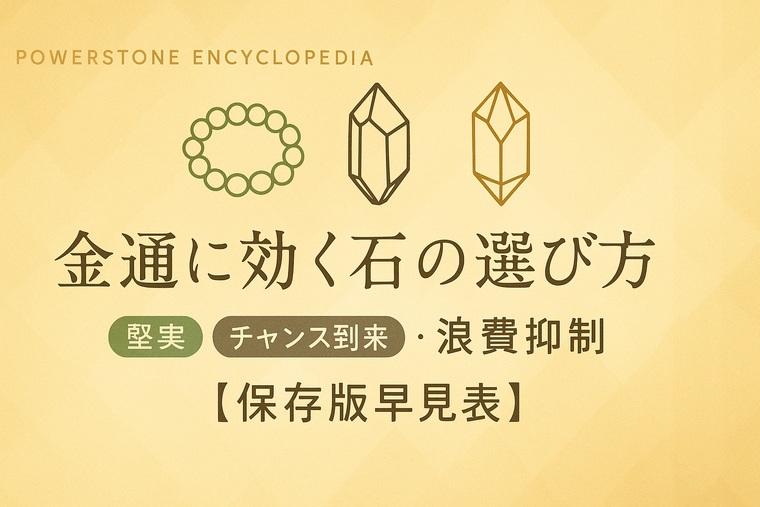 チャンス到来(流れをつかむ) | シトリン/ グリーンアベンチュリン | 良い流れを呼び込み、行動の一歩を軽くしたい | シトリン × クリア(方向の微調整) | 投機の保証は不可。小さな行動(情報収集→比較→少額試行)で検証 | シトリン/アベンチュリン |